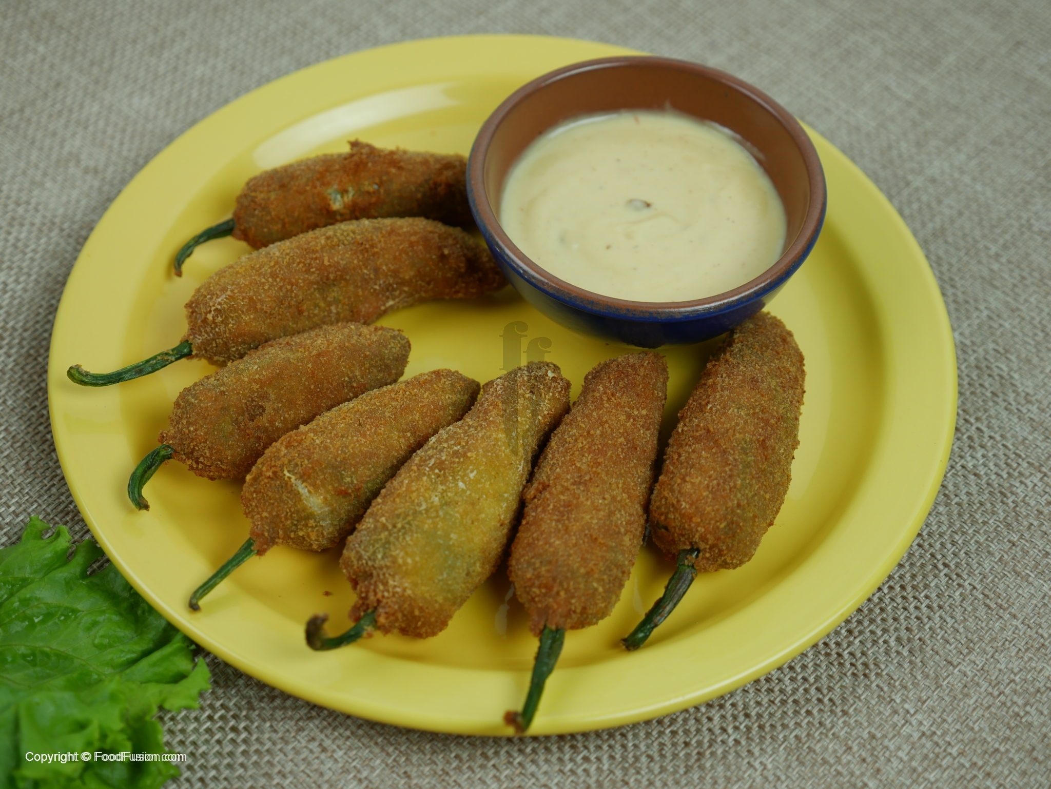 Take out chilies from water and pat dry them. Put a chicken slice and cheese inside the chilies and set aside.