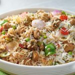 -Add soaked rice & boil on medium flame until 90% done then strain & set aside.