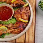-Karahi mein cooking oil aur marinated chicken with marinade aur pani dal ker dhak dein aur halki ancch per 10-12 minutes kliya paka lein phir flip karein aur halki ancch per 10-12 minutes kliya paka lein (check in between).