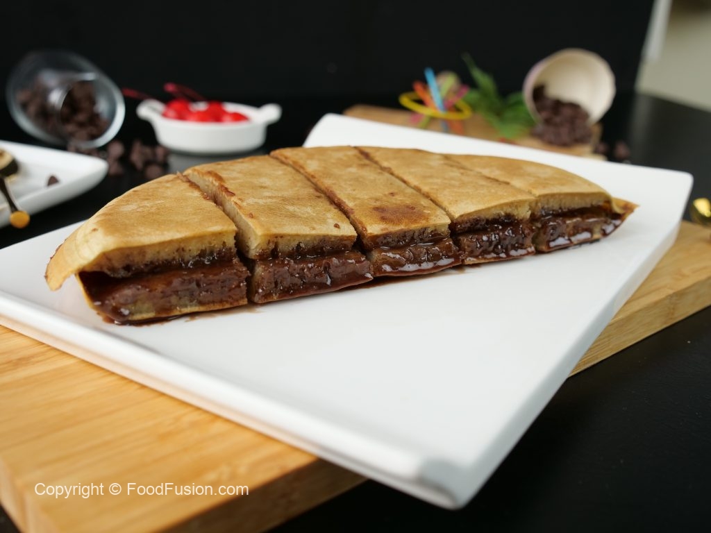 Chocolate Apam Balik Crepes – Famous Malaysian street Food Recipe by Food Fusion. Just like a large pancake cooked from one side and topping from other. So this time add a little twist to your menu. #HappyCookingToYou #FoodFusion