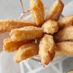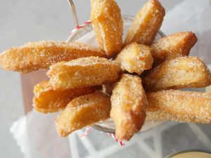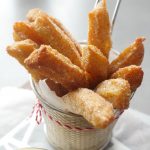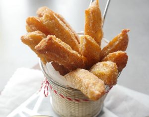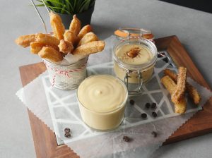 Churros ko coffee+cheeni mixture mein dal ker ache tarhan coat ker lein.