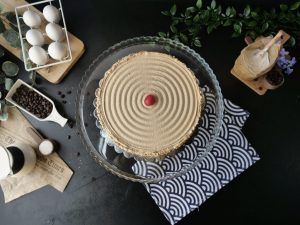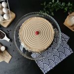 Add & spread coffee syrup and coffee butter frosting & frost the outside of the cake with coffee butter frosting.