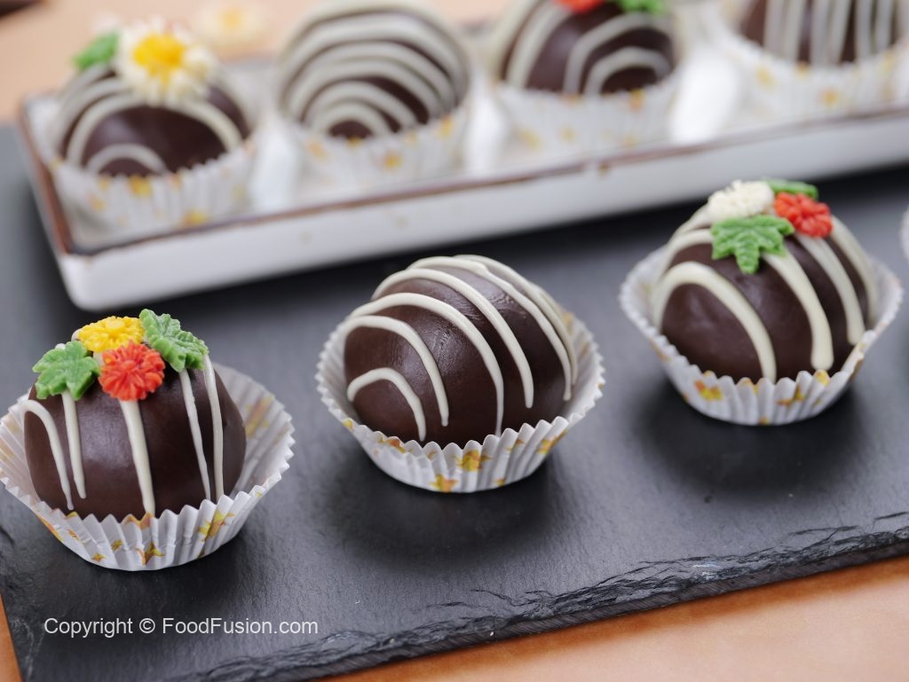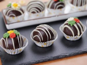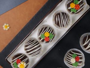 -Drizzle white chocolate & decorate with chocolate flowers & refrigerate until set (makes 12 truffles).