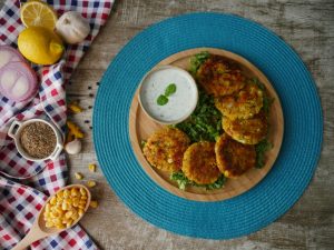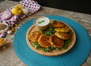 In air fry machine,place corn cutlets,brush oil from both sides and air fry at 180 C for 15 minutes.