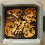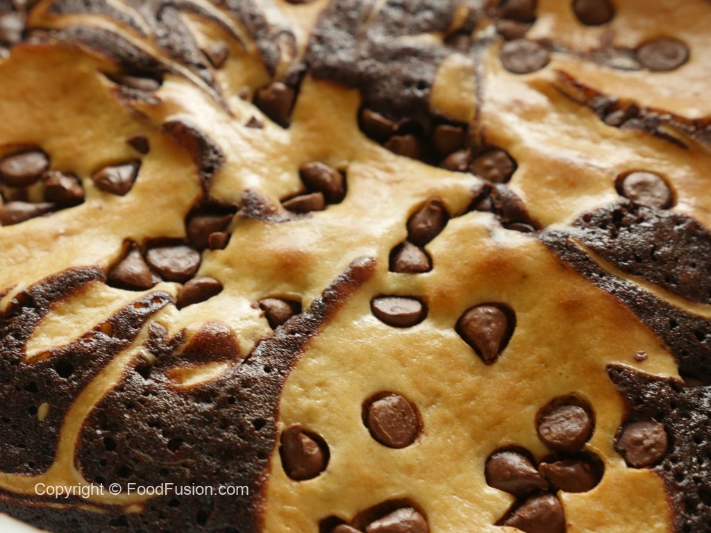 8 x 8 inch baking pan mein butter paper laga lein,tayyar brownie batter aur cream cheese batter dal dein aur skewer ki madad sa swirls bana lein.
