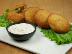 Bowl mein chicken,matar,aloo,dhania,lal mirch,kali mirch,namak,mozzarella cheese aur Olper’s cream dal ker ache tarhan mix ker lein.