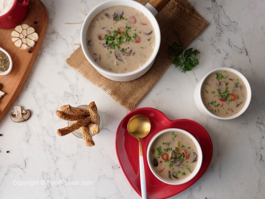 Mushrooms ko thin slices mein cut ker lein & side per rakh dein.