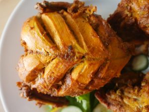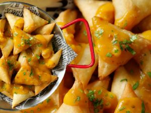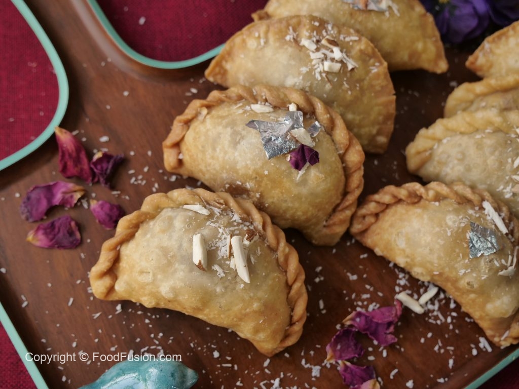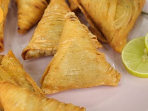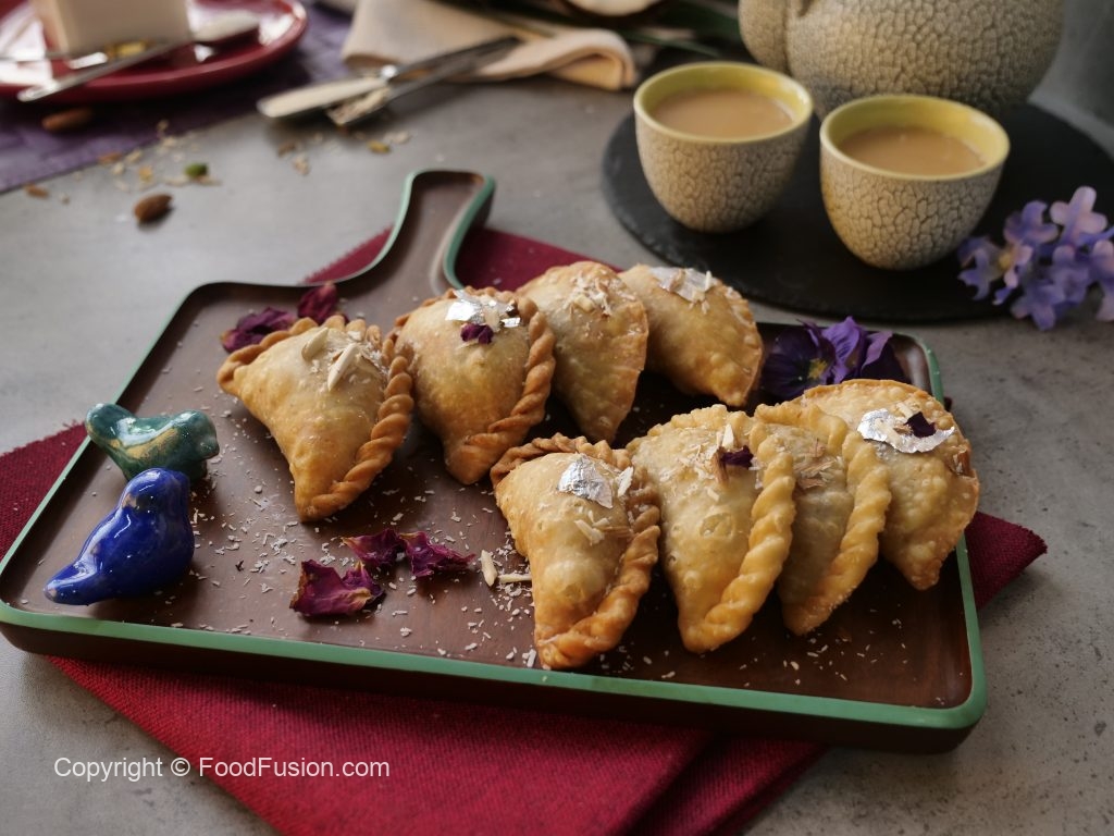 Brush oil on creamy coconut samosa & bake in preheated oven at 200C for 20-25 minutes (flip in between once after 15 minutes).