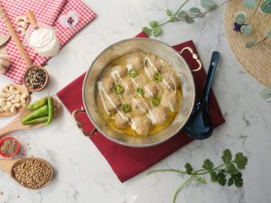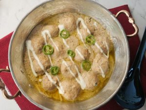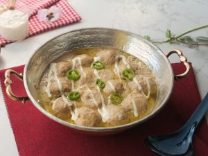 -Ab creamy koftay dal ker gently fold ker lein aur dhak ker halki ancch per oil alag ho janay tak paka lein (12-15 minutes).