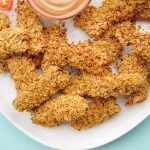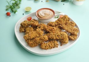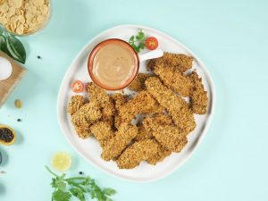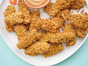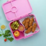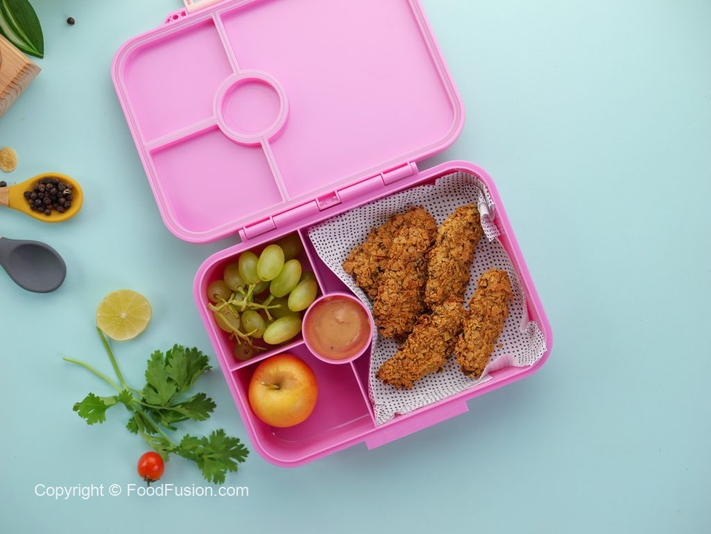 -Serve crispy chicken tenders with prepared sauce in lunch box!