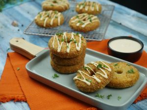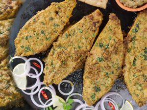Add breadcrumbs,cornflour,cumin seeds,chicken powder,dried mango powder,red chili powder,garlic powder,black pepper powder,salt,egg,onion,fresh parsley and mix until well combined,cover and let it rest for 10 minutes.