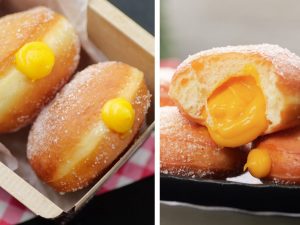 In frying pan,heat cooking oil and fry donuts on medium flame until golden brown.
