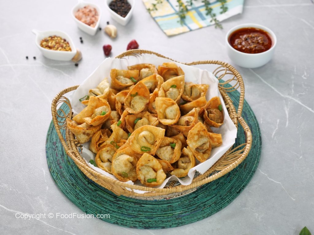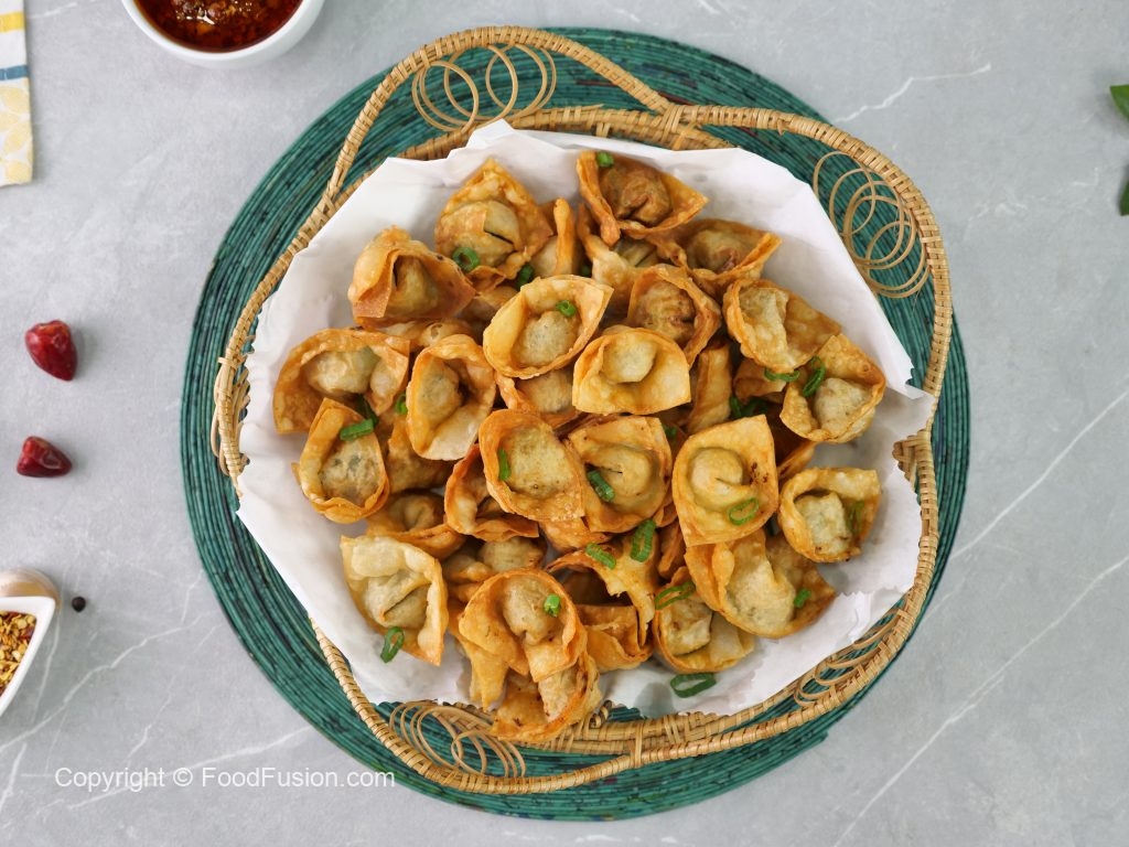 -Wontons ko darmiyani aanch par fry karain jab tak golden brown na ho jayein.