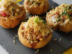 Knead dough again until smooth,take a small portion & with greased hands make a small ball & shape into a small bowl.