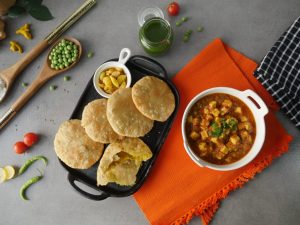 Serve daal kachori with aloo ki tarkari,mixed pickle & yogurt raita!