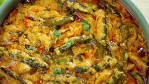 -Bhindi ko half-length wise mein cut ker lein & side per rakh dein.