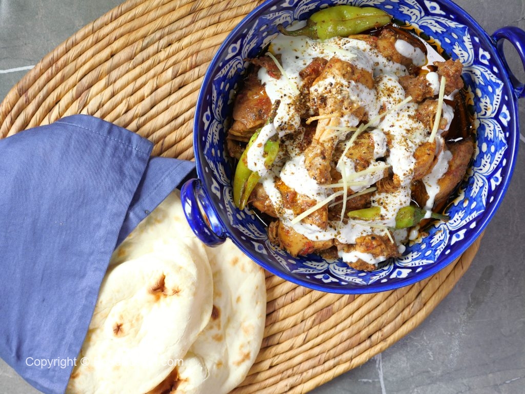 -In a serving dish,add chicken karahi,yogurt & sprinkle reserved spice mix.