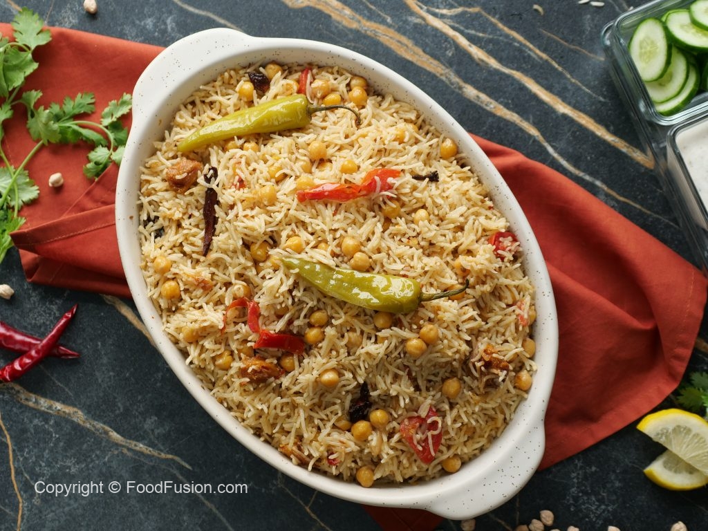 -Degi chana pulao ko dahi ka raita,salad & fried pyaz ka saath serve karein.