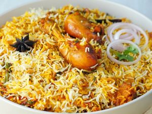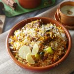 Add dissolve food color and fried onion,cover and steam cook on low flame for 8-10 minutes & serve!