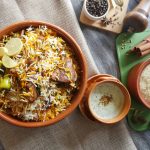 Add fresh coriander & mint leaves,fried onion,half quantity of boiled rice,chicken gravy,fresh coriander & mint leaves,fried onion and remaining boiled rice.