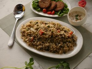 - Chawal (Rice) ½ kg (soaked & boiled with salt until 3/4th done)