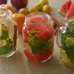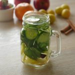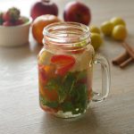 Jug mein strawberries,grape fruit,orange,kiwi,podina,apple cider vinegar aur thanda pani dal dein aur stir ker ka cover ker lein.