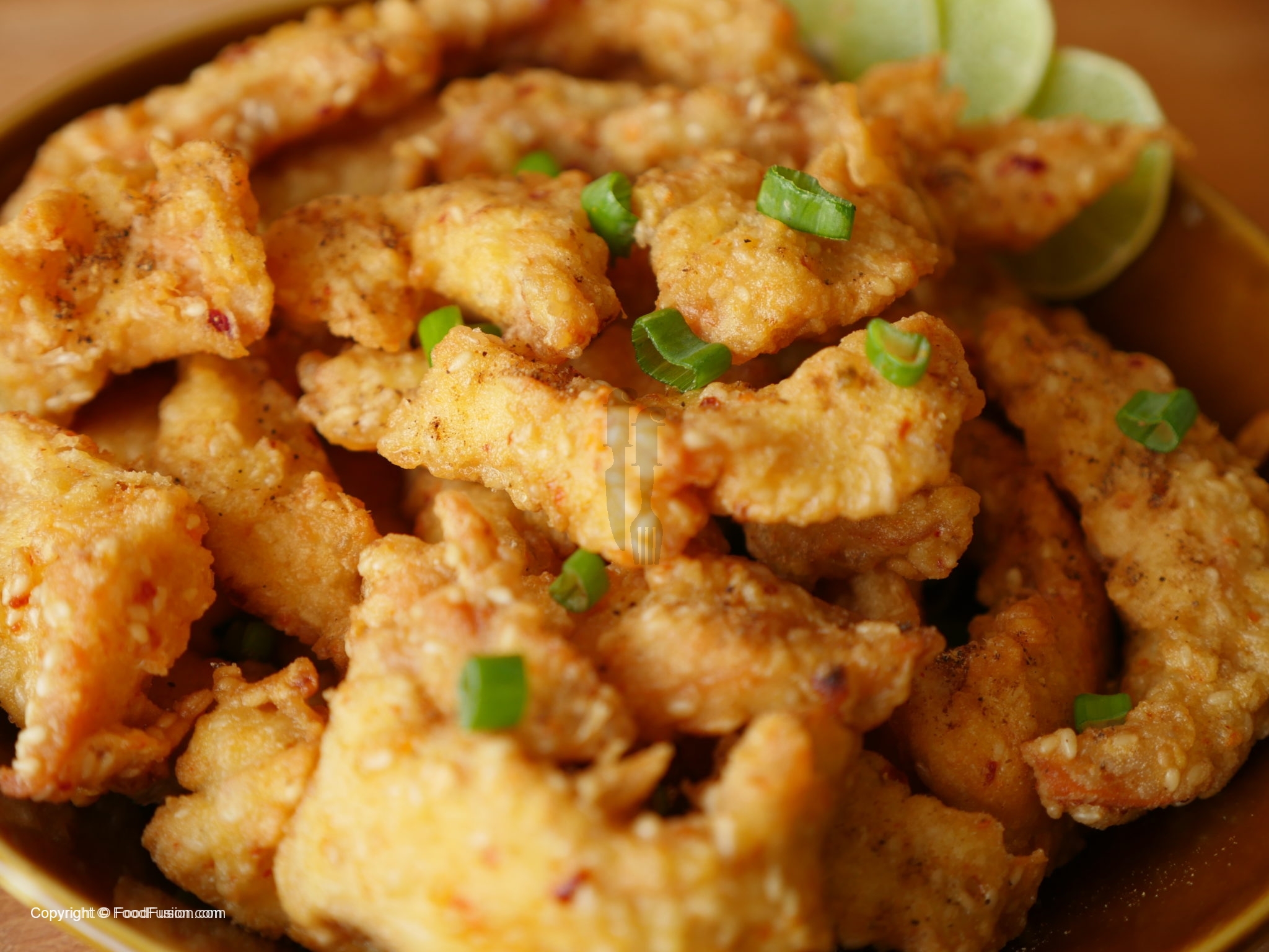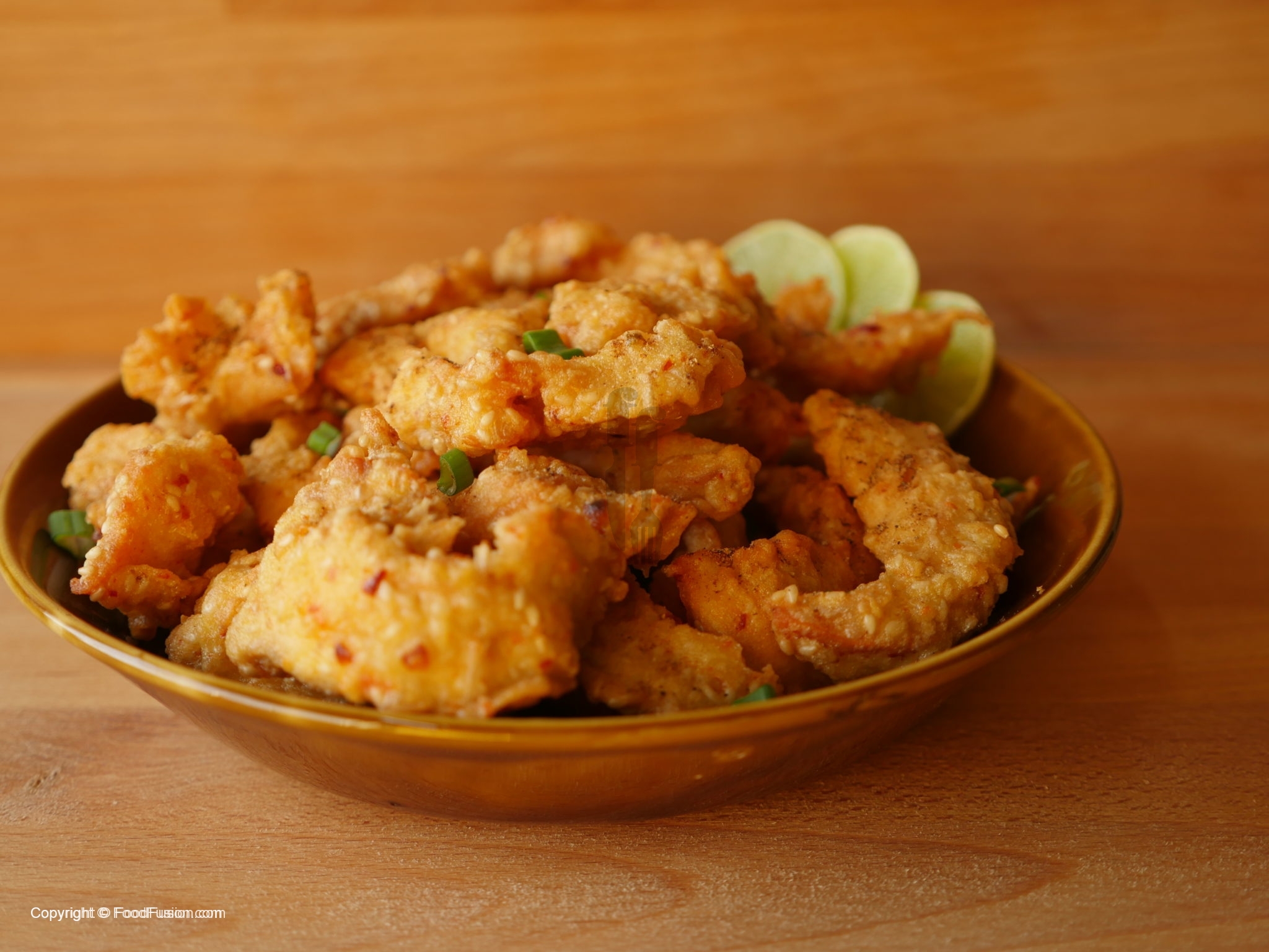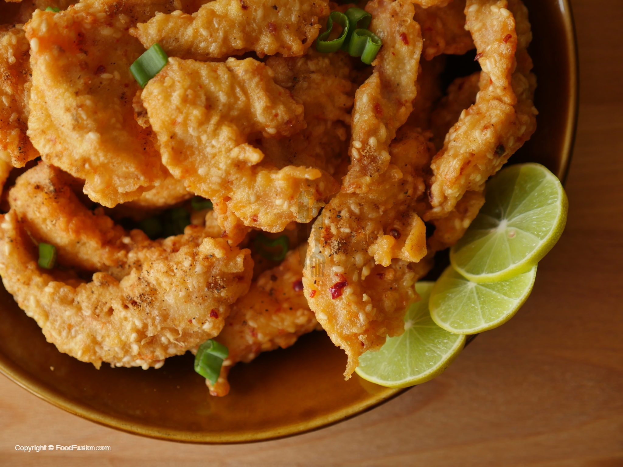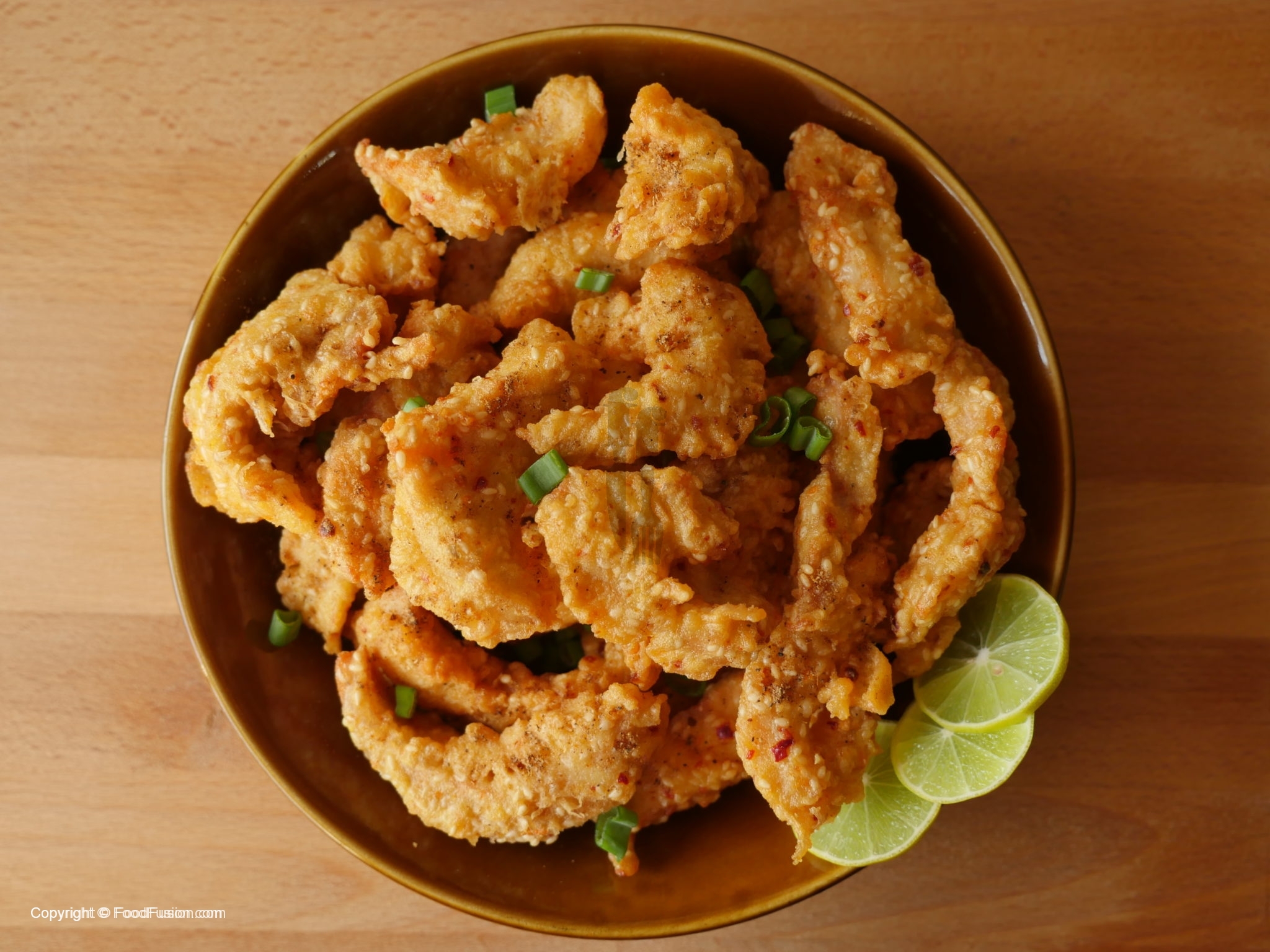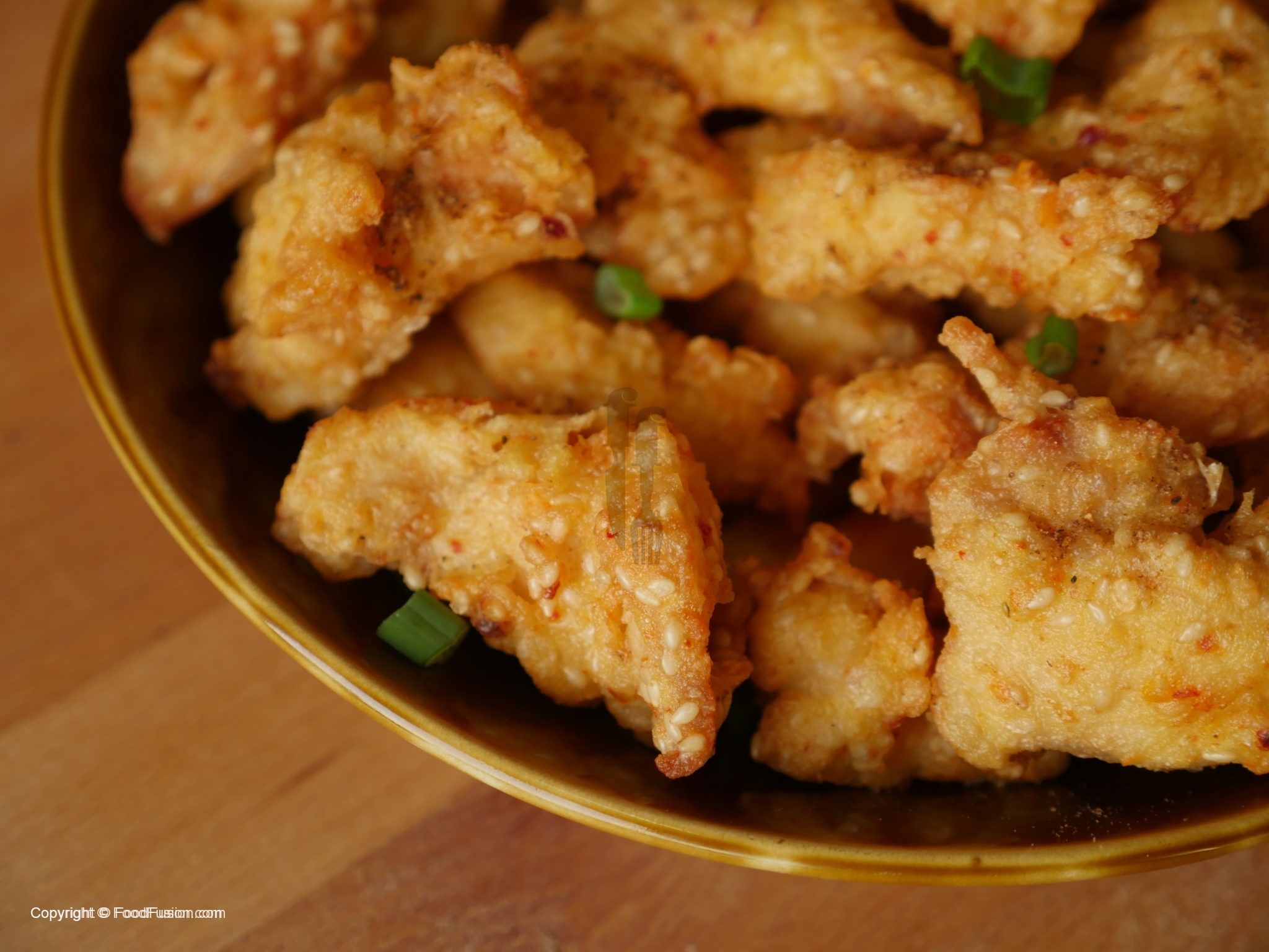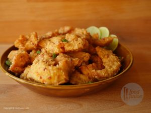 In wok,heat oil and fry until golden brown.