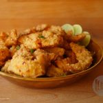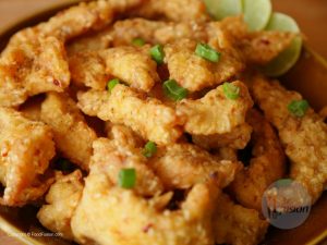 Add corn flour,sesame seeds,red chili crushed,chicken powder,salt and mix.