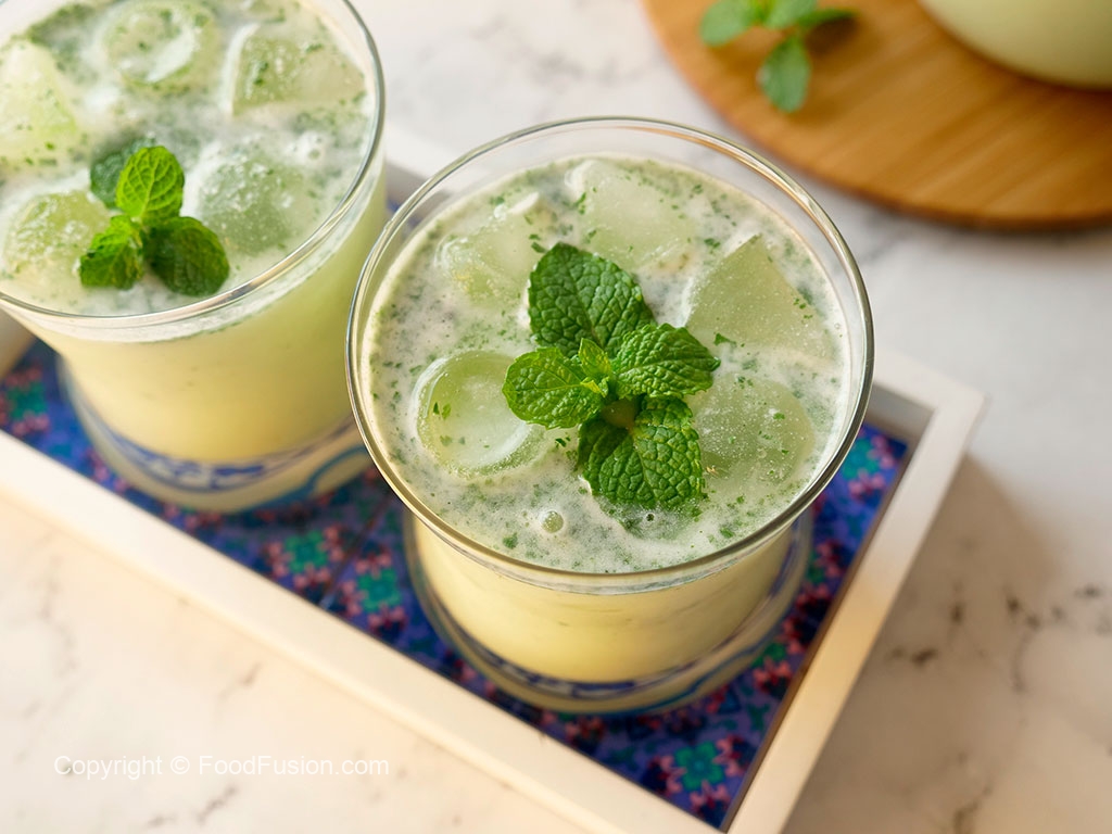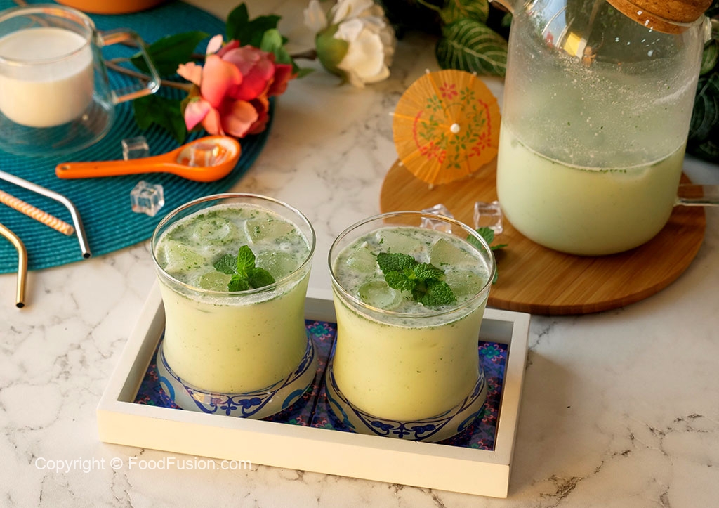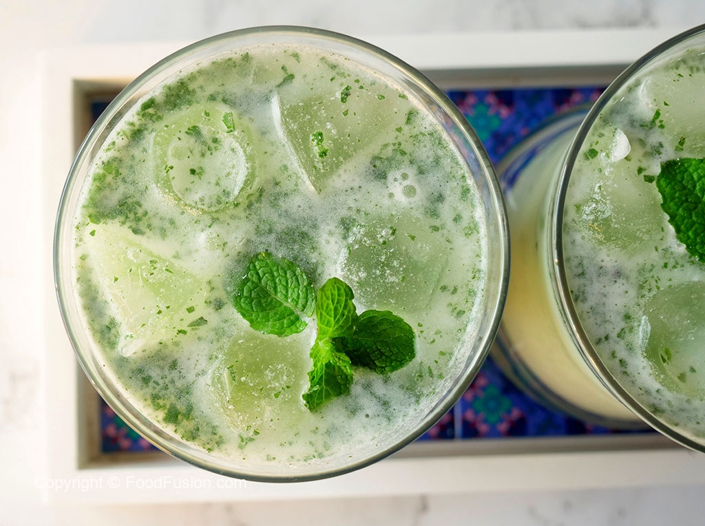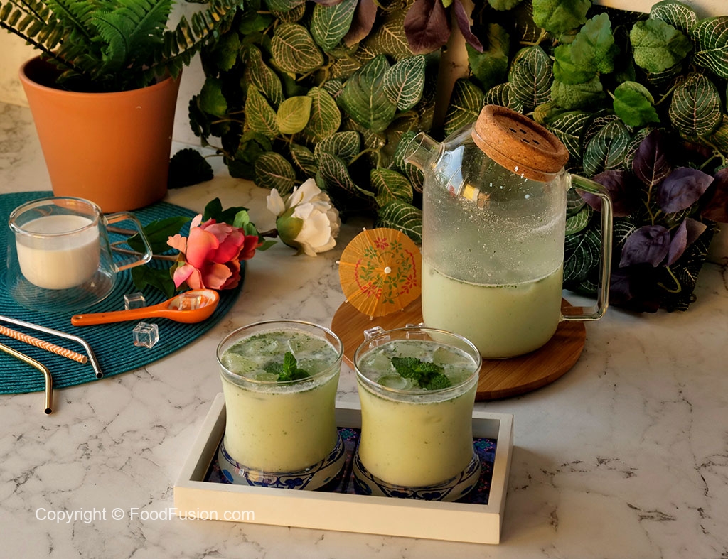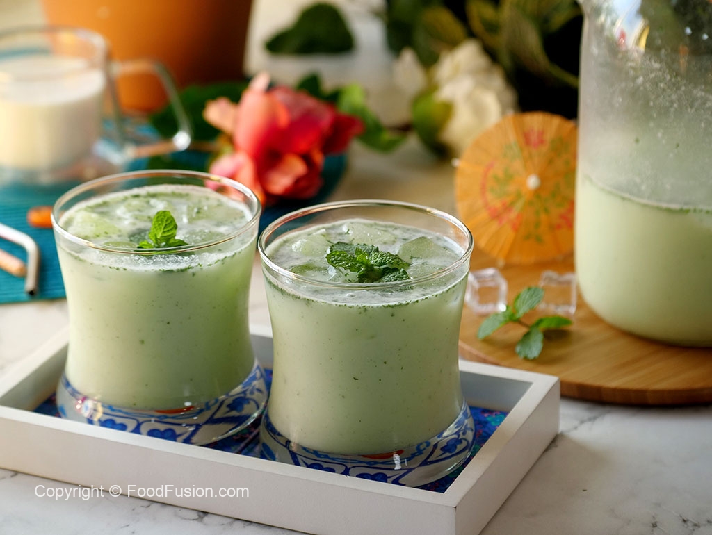 Serving jug mein ice cubes,yogyurt mint drink aur soda water dal ker stire ker lein & serve karein!