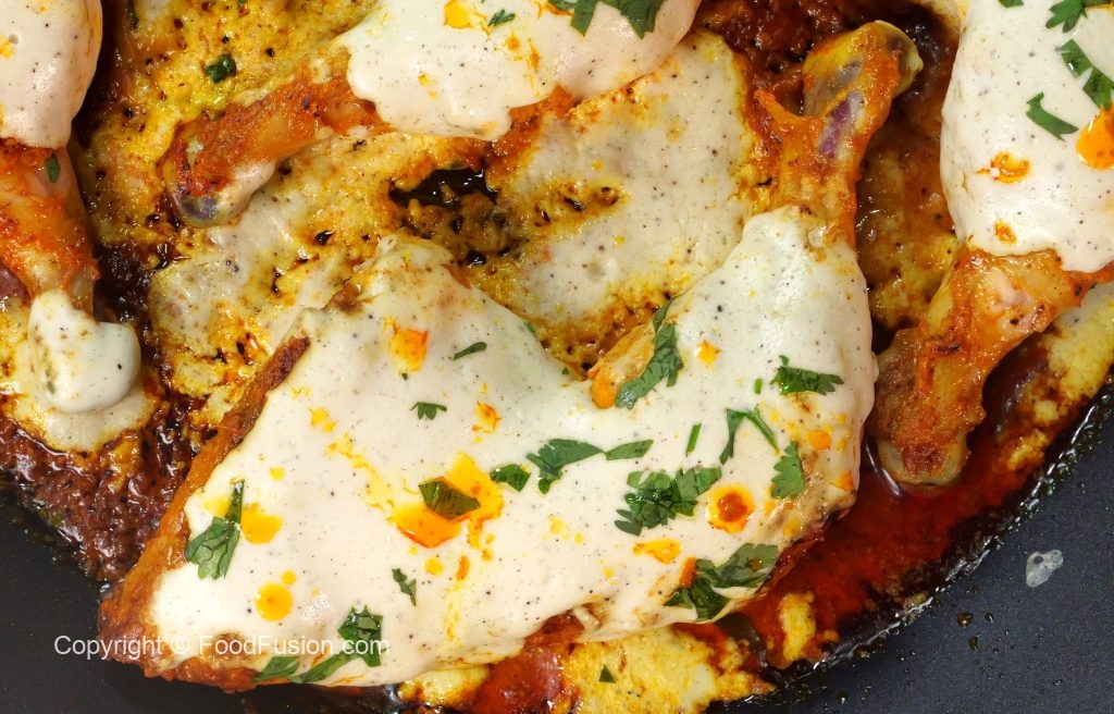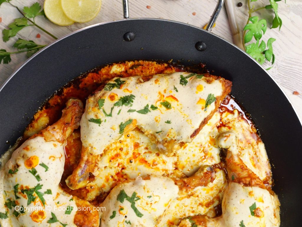 -Remove cover, flip the chicken pieces, pour prepared signature garlic sauce over chicken, cover & cook on low flame for 2-3 minutes.