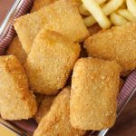Coat frozen fish nuggets with all-purpose flour than dip into liquid flour mixture & coat with breadcrumbs (makes 26-28).
