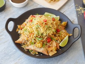 Sprinkle chaat masala,fresh coriander & serve with spicy tamarind sauce!