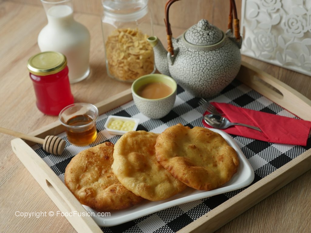 In frying pan,add heat cooking oil and fry dough from both sides until golden brown.