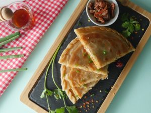 Grease frying pan with ghee & place prepared paratha and prick with skewer,brush melted ghee & fry from both sides until golden brown & serve!
