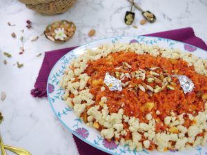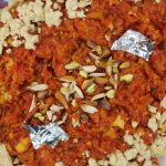 -Add grated carrots,mix well,cover & cook on medium flame for 5-6 minutes then cook until moisture dries up (10-12 minutes).