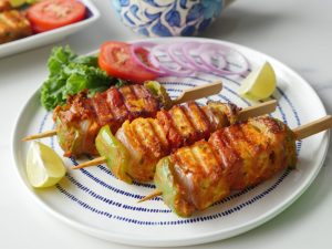 -In a dish,add chicken,paprika powder,garlic powder,black pepper powder,pink salt,soy sauce,lemon juice & mix well,cover & marinate for 15-20 minutes.