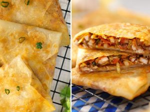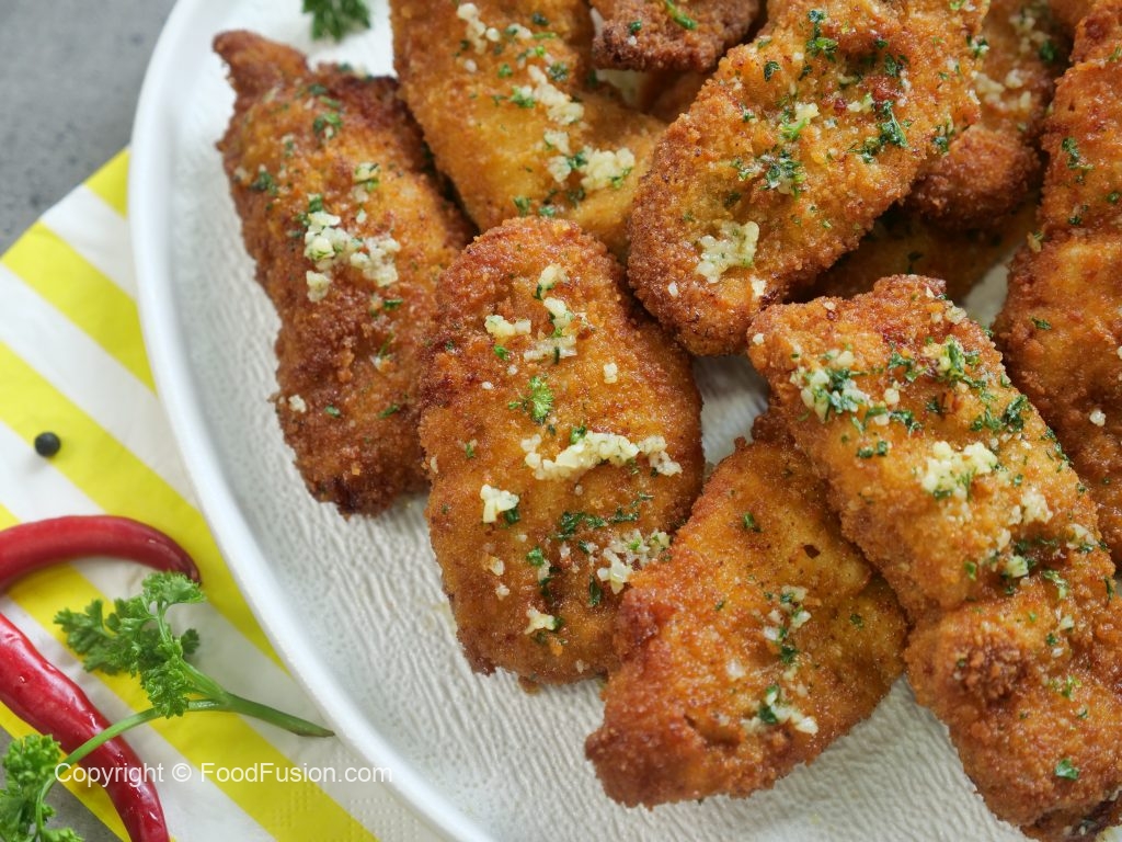 -Tayyar garlic butter ko fried chicken tenders per dal dein.