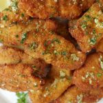 -Pour prepared garlic butter on fried chicken tenders generously.