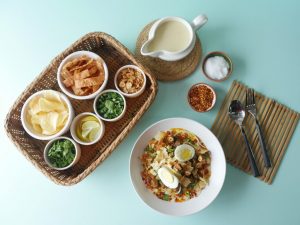 Hara pyaz sa garnish ker ka fried rice ka saath serve karein!
