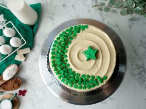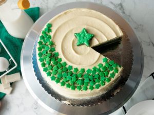 Cake ko star sprinkles aur cake crumbles sa decorate ker lein.