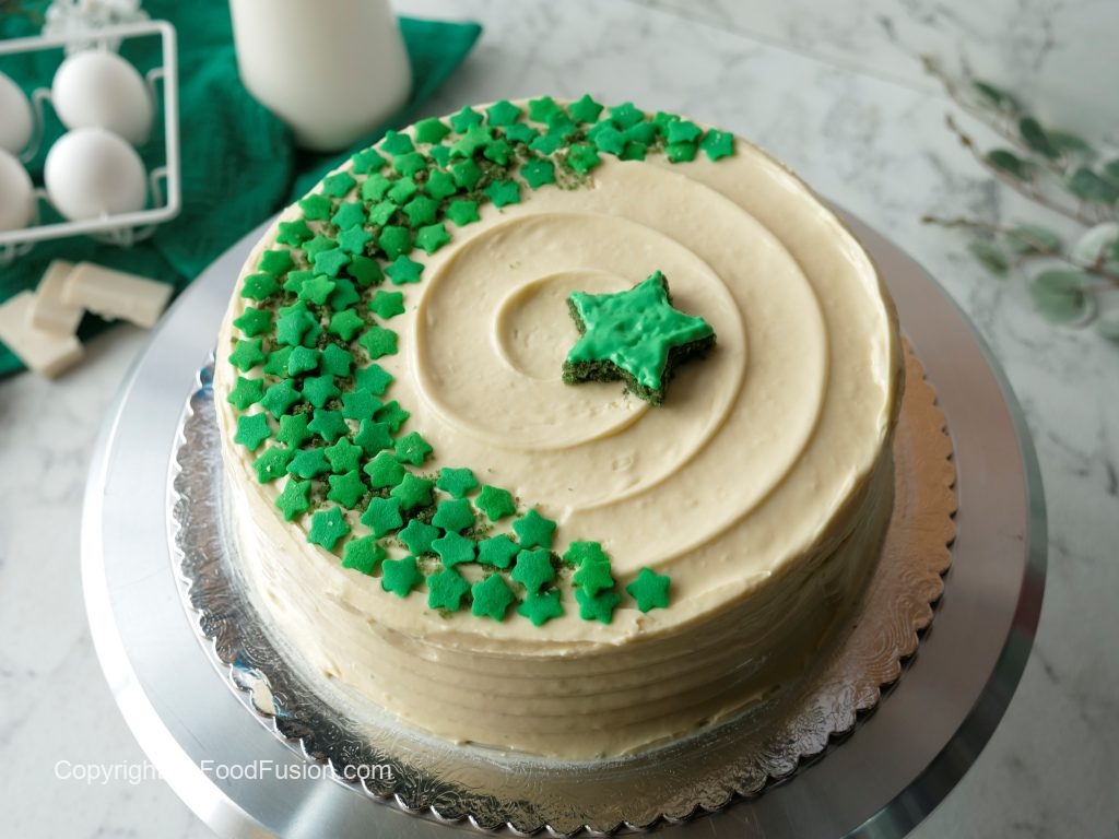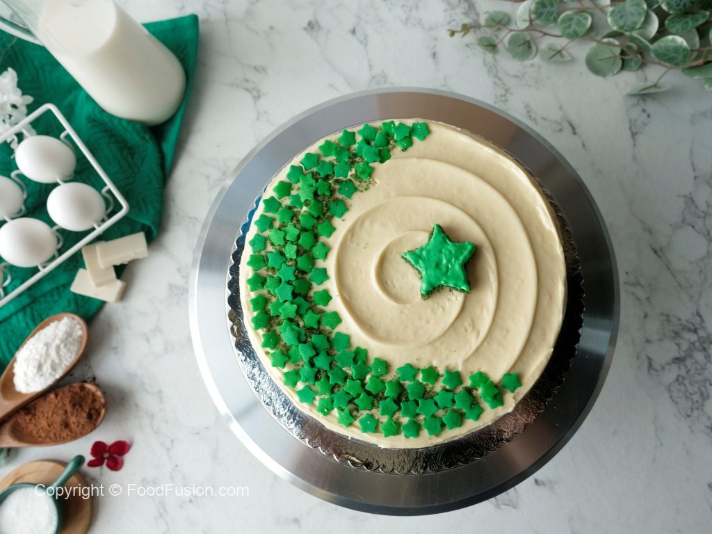 Cream cheese frosting dal ker pheela lein aur puray cake ko cream cheese frosting sa cover ker lein.