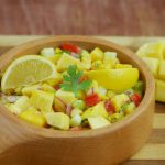 Try this fresh, healthy and nutritious Mango Fusion Salad recipe with a touch of lime pickled onions. Also learn how to beautifully cut a mango.