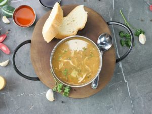 -Gajar,pyaz,celery stalks,aloo,lehsan,chicken stock cube & pink salt dal ker partially cover ker lein aur halki ancch per 25-30 minutes kliya paka lein.