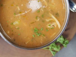 -Add carrots,onion,celery stalks,potatoes,garlic,chicken stock cube,pink salt,cover partially & cook on low flame for 25-30 minutes.