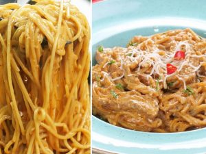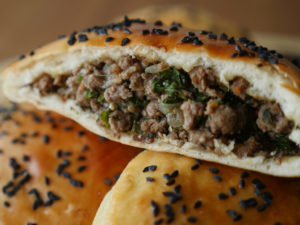 Mortal & pestle mein roasted zeera aur sabut dhania dal ker coarsely crush ker lein.