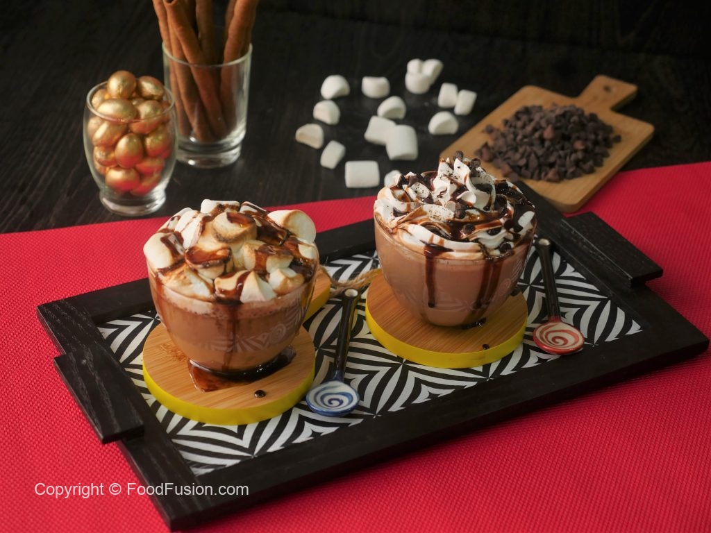 In serving cup,add caramel hot chocolate,marshmallows and burnt with blow torch.