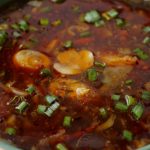 Pour prepared chilli oil and garnish with green onions leaves & serve!