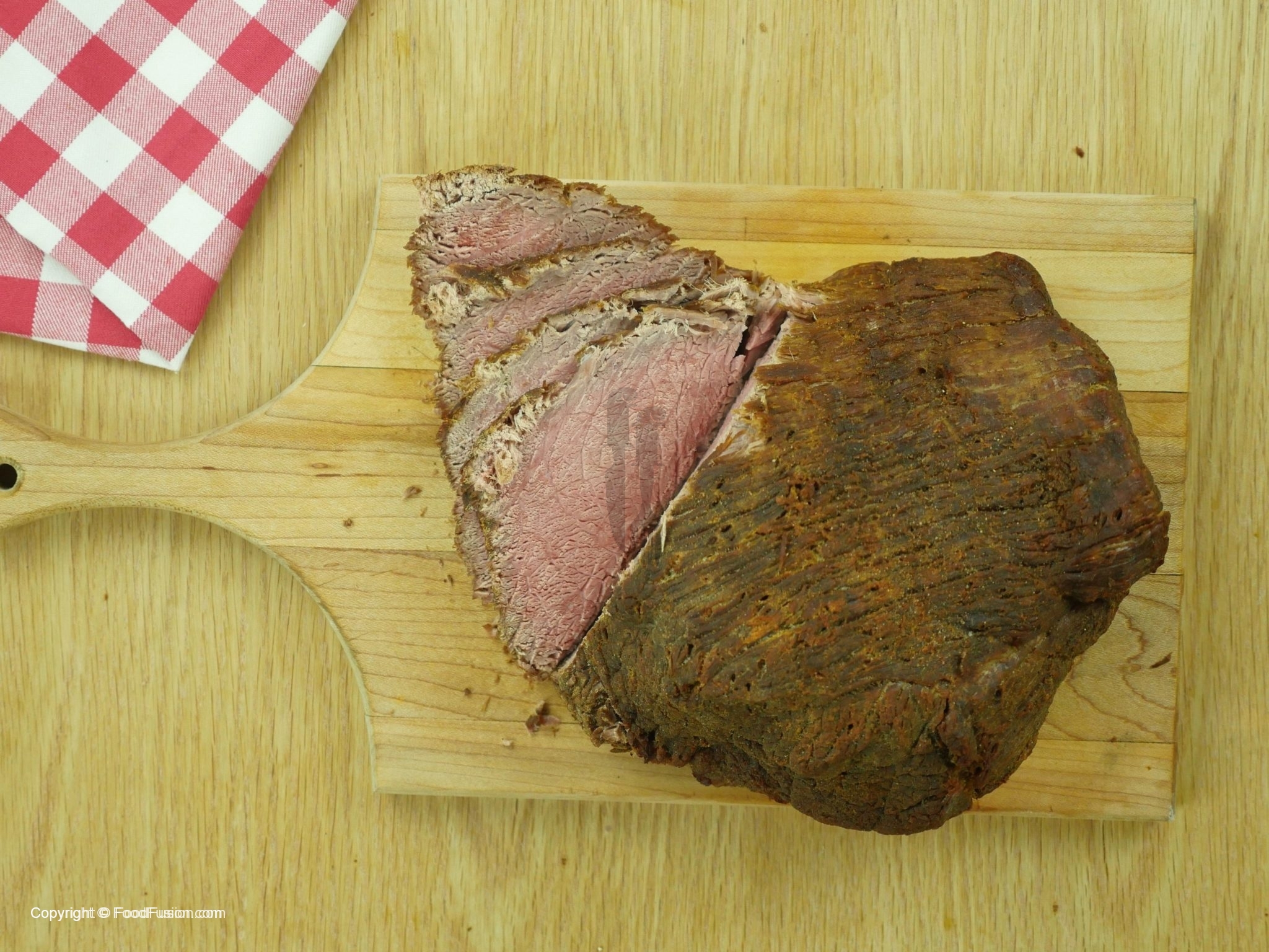 Place meat in plastic container, add salt peter, black pepper, brown sugar, salt, and apply evenly.