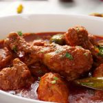 -In a bowl,add chicken,coriander powder,pink salt,kashmiri red chilli powder,turmeric powder,cumin powder,black pepper powder,carom seeds,garam masala powder,red chilli powder,cardamom powder, cashew powder,tomato,yogurt,fried onion,green chilli paste,ginger garlic paste,vinegar,green chilli sauce,red chilli sauce,soy sauce & mix well,cover & marinate for 2 hours.