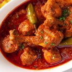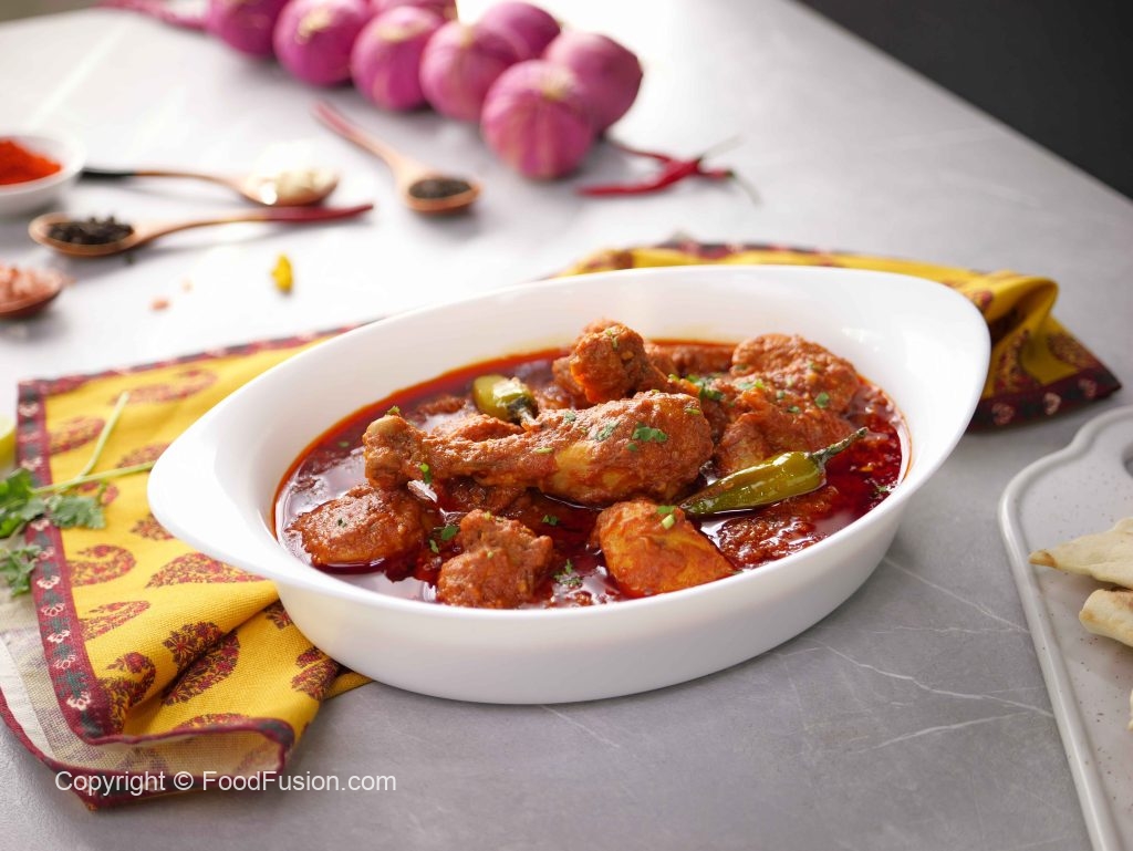 -Karahi mein cooking oil,curry pattay aur marinated chicken dal kar achi tarhan mix karein aur darmiyani annch per 4-5 minutes kliya paka lein.